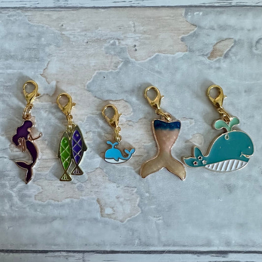 Stitch Marker Set, Progress Keeper, Ocean, Mermaid, Fish, Shark, Whale, Jellyfish, Sea Shell, Fin, Summer